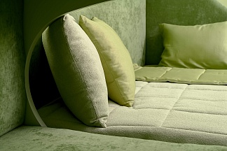 На Tatami получается идеально ровная и устойчивая поверхность матраса. Основание имеет мягкие бортики закругленной формы. Увеличенная высота ножек из бука позволит осуществлять легкую уборку под кроватью, в том числе с помощью робота-пылесоса. Исполнение доступно во всех видах ткани.